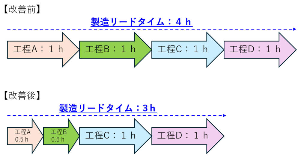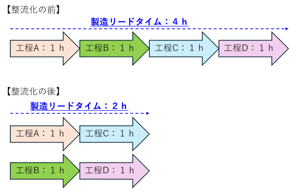 他にも整流化することで、作業時間そのままで製造リードタイムを短縮できます。